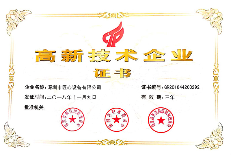 High tech Enterprise Certificate