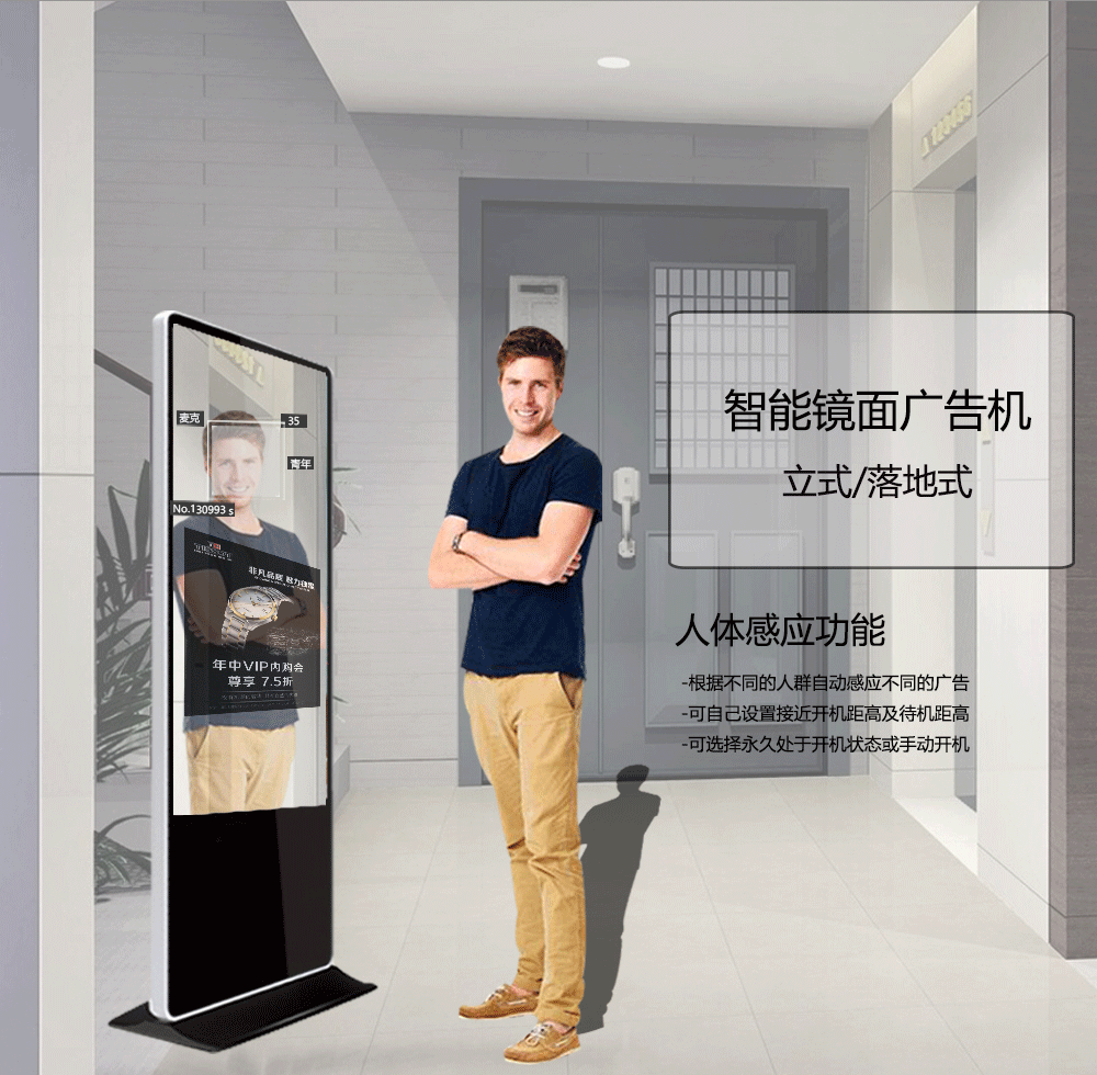 镜面落地广告机
